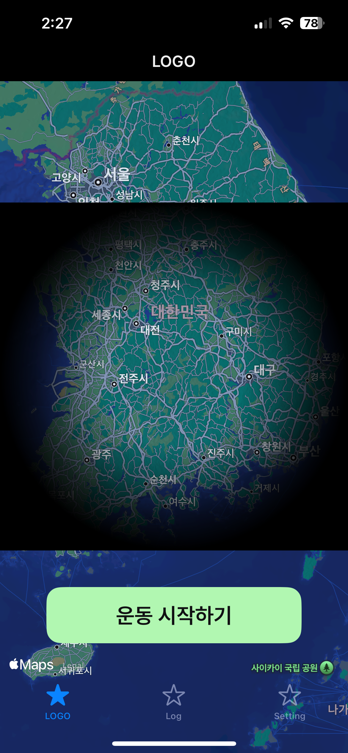 그래서 레이어를 처음부터 그려보는 과정을 여러번 거치면서 값을 하나씩 바꿔보면서 현재의 모습으로 만들 수 있었다. 이후는 탭바 스타일을 지정해주고 맵킷의 나머지 부분을 검은색 배경으로 만들어주면 완성될 듯 하다